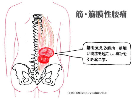 椎間関節が原因の場合は、背骨の真上あたりが痛くなります。左右どちらか一方のことが多く「ここが痛い」と指をさせるくらいは明確な場所を示すことが出来ます。仙腸関節が原因の場合は、臀部の真ん中から下のあたり...場合によっては鼠蹊部のあたりに痛みを感じる方もいらっしゃいます。最後の筋膜・筋肉の場合は、何が原因の腰痛であっても痛むことが多いです。