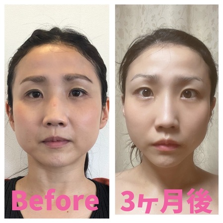 最も重要な変化は顔の重心位置が頬より下にあったのが頬より上の位置に変わったことです!そのため、Beforeでは小さなコブのような膨らみが目立っていたのが重心位置が上がったことにより頬からアゴの角度がシャープに変化し、丸顔から逆三角形のフェイスラインになっています。